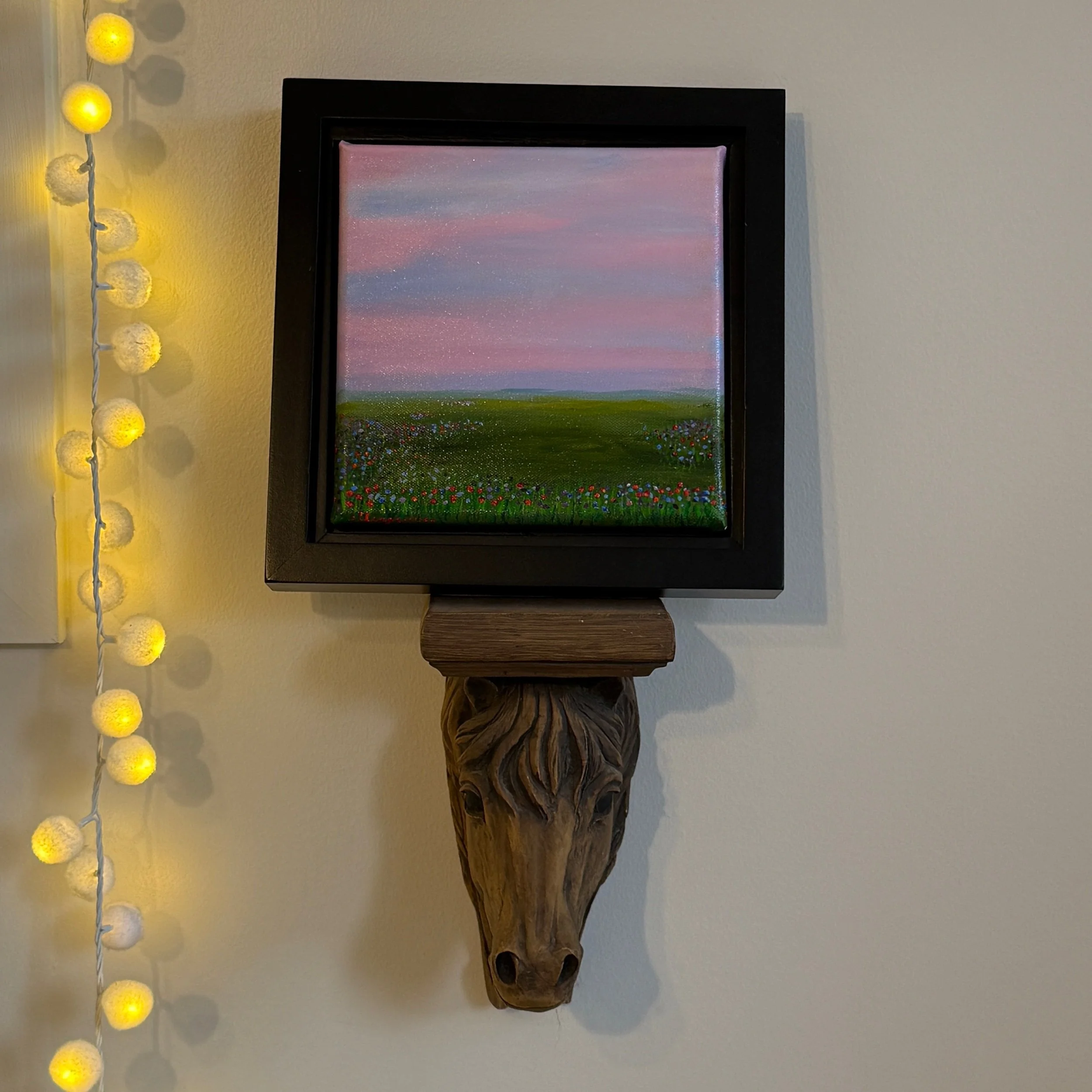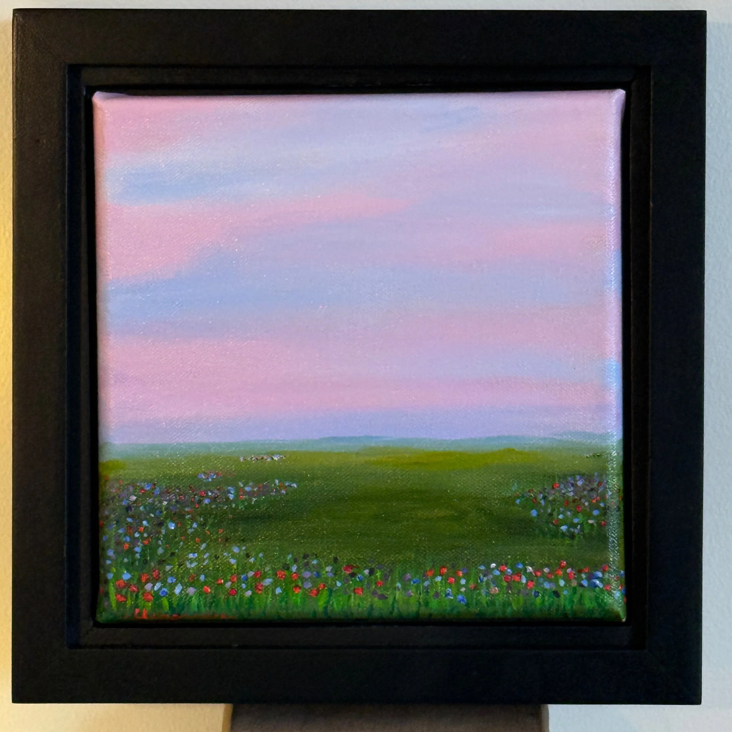 This piece is inspired by my new favorite show Shrinking. The show is a wonderfully funny representation of how we all walk around this earth with some sort of mental challenge and how we manage through it. The introduction shows a beautiful soft sky with green grass and flowers. Everyone has their own path to wholeness and inner peace. Allow this piece to mirror this in your life. And maybe bring a giggle to you to several times a day.